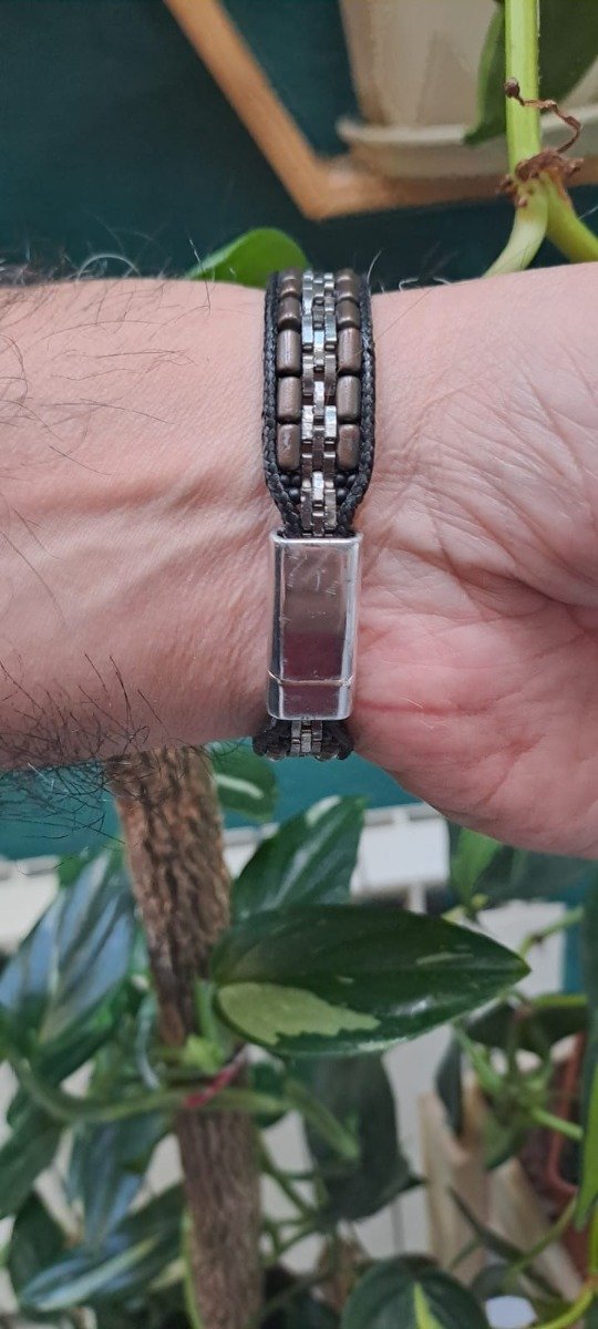 Para esta pulsera vas a necesitar, tanza de nylon 0.25, 2 agujas n 12, mostacillas, 3 grs de cuarto de tilas, 6 grs de media rula, 50 cm de cordón sintético. Esta pulsera no tiene tutorial en pdf solo el video